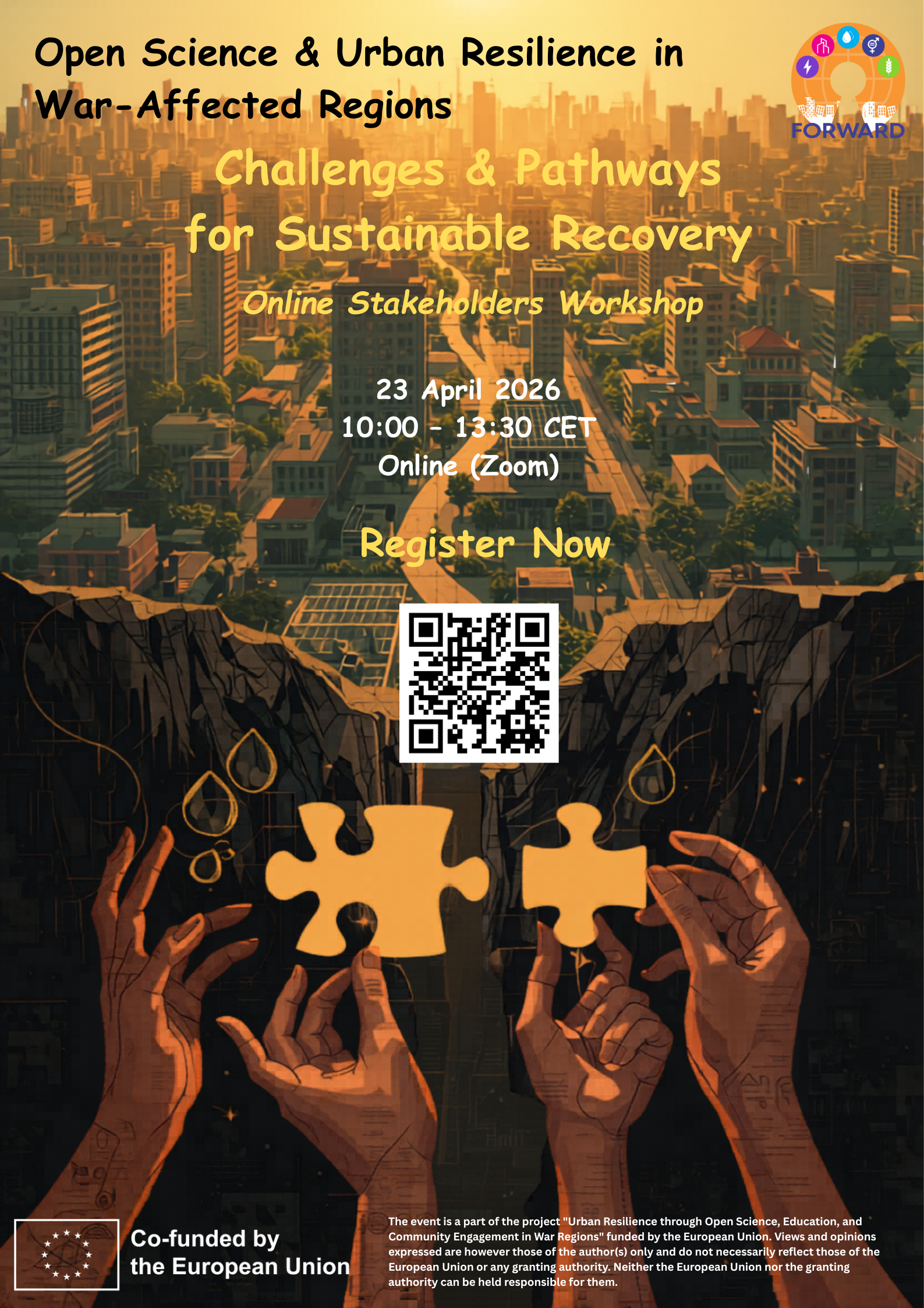 We are pleased to announce an upcoming workshop titled “Open Science and Urban Resilience in War-Affected Regions: Challenges and Pathways for Sustainable Recovery”, organized by the EU-cofunded FORWARD project (WP2).